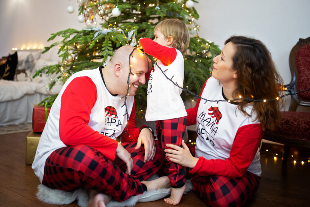 Piżamy rodzinne – Jeśli chcecie bardziej luzacki, zabawny klimat, piżamy to świetny wybór! Mogą być jednolite lub z nadrukami świątecznymi, a nawet pasujące dla każdego członka rodziny – od najmłodszego po najstarszego.