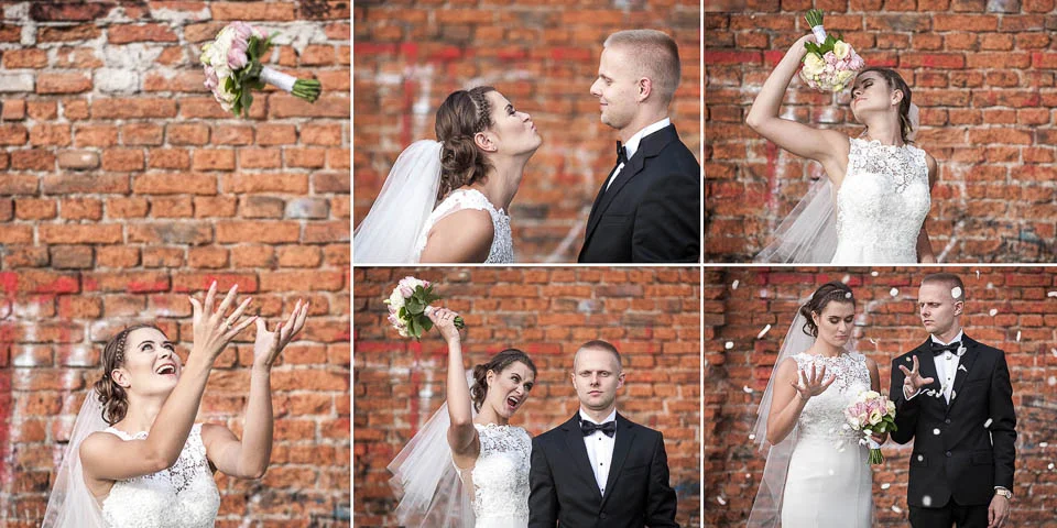 - jeśli macie problem z pozowaniem, poproście fotografa żeby „wrzucał Was” w różne sytuacje, na przykład zaczął w was rzucać papierowymi kulkami kiedy stukacie się kieliszkami. Będzie to wyglądało w miarę naturalnie.